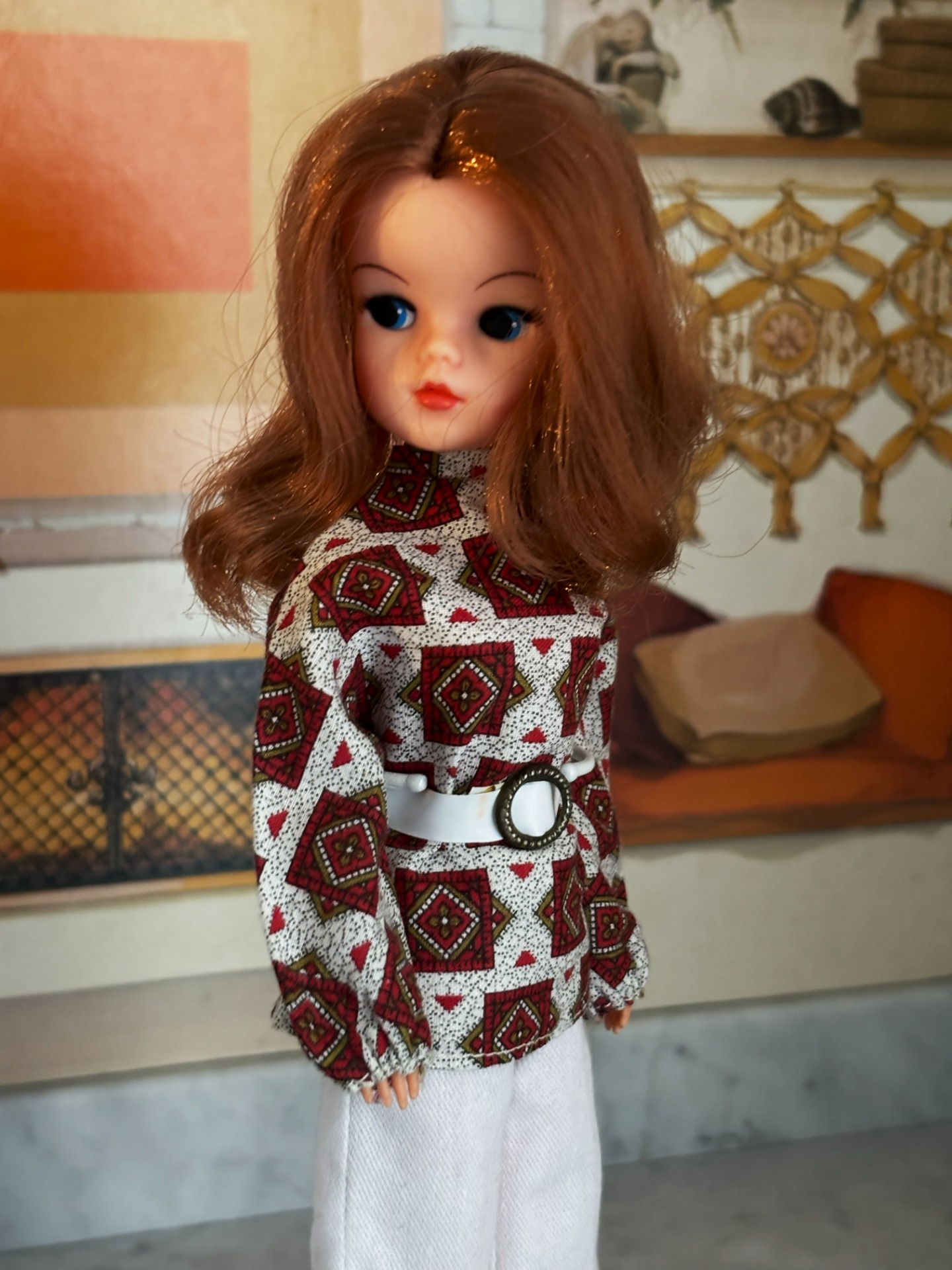 A cool blouse that has been made in several colors and patterns. The first came in 1964-65 and then a new edition in 1967-70. I have chosen to show it as an overshirt but the "correct" way is to have the buttons on the back.