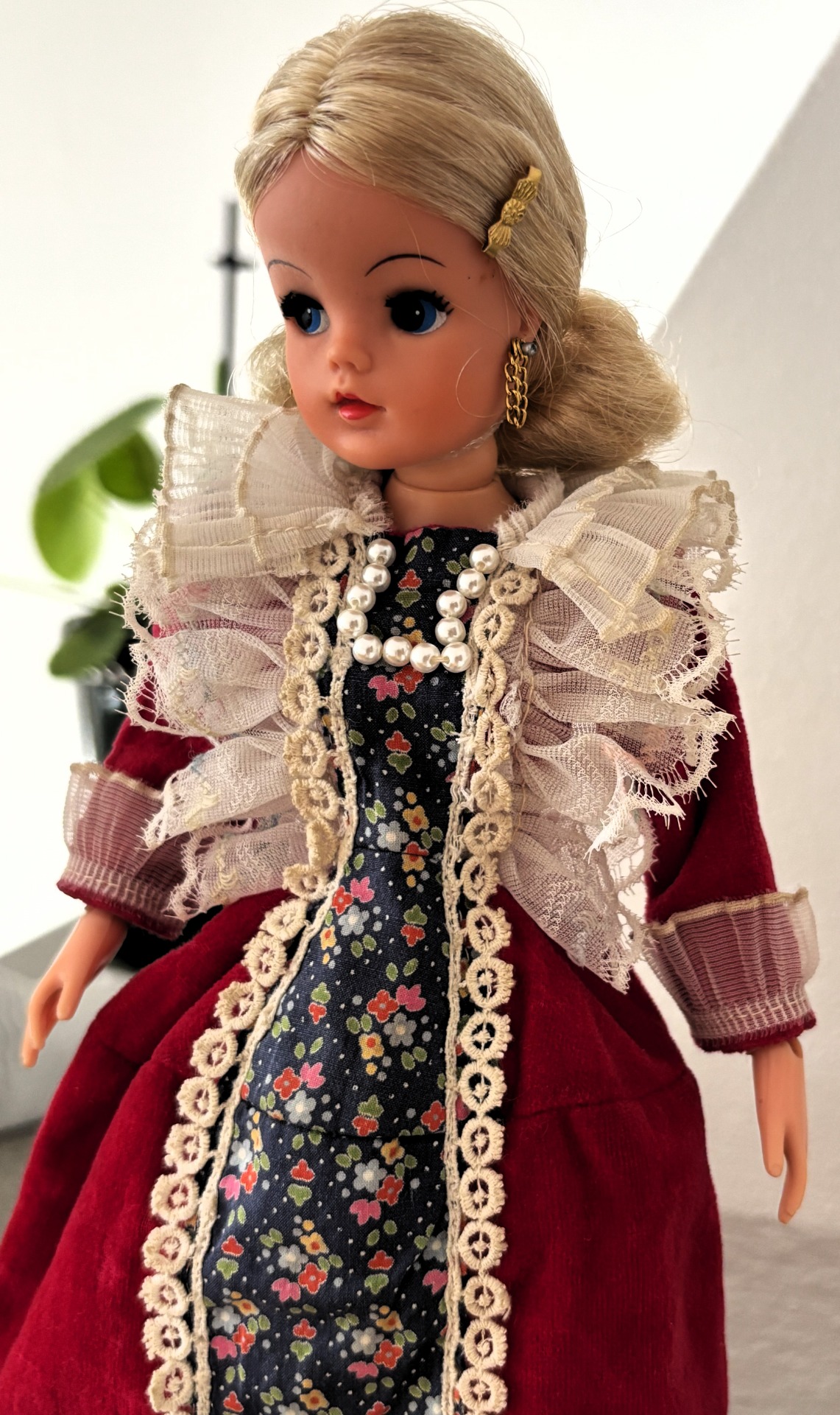 An absolutely fantastic and well-made Elizabethan dress and a ornate headband. White trendy shoes.
